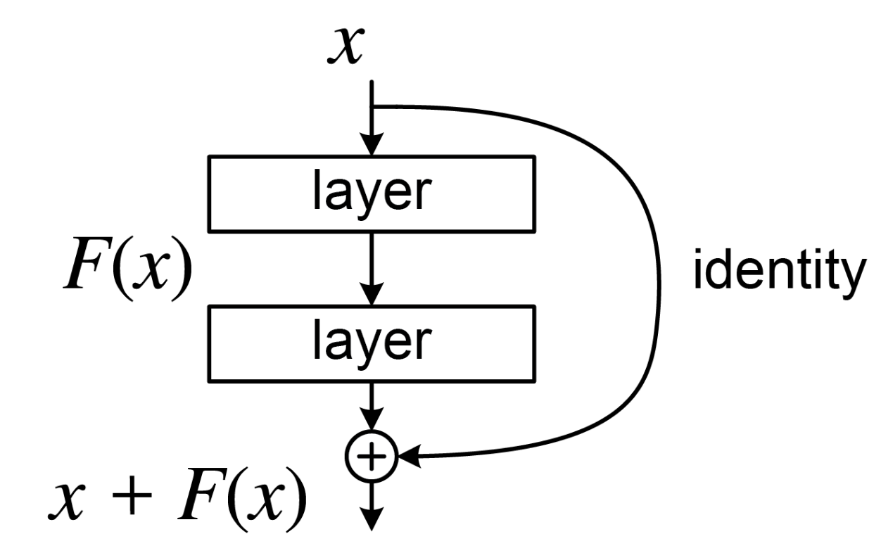 ResNet과 기존 NN간의 차별점은 위 그림에서 표시된 identity mapping 화살표이다.