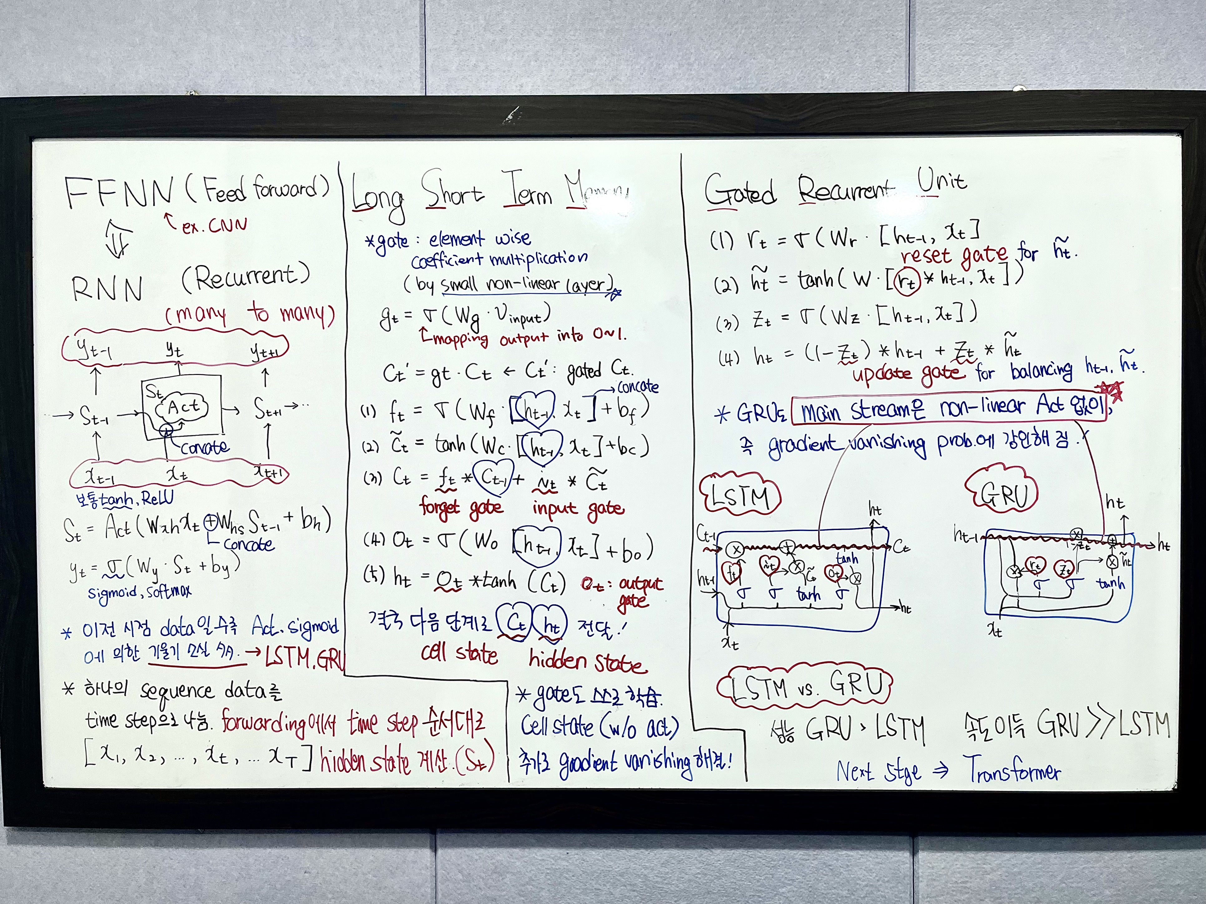์ด ๋ฌธ์ ๋ฅผ ํด๊ฒฐํ๊ธฐ ์ํด ๋ฑ์ฅํ ๊ฒ์ด LSTM, ์ด๋ฅผ time-consuming ์ธก๋ฉด์์ ๋์ฑ ๋ณด์ํ ๊ฒ์ด GRU๋ผ๊ณ ๋ณผ ์ ์๊ฒ ๋ค.